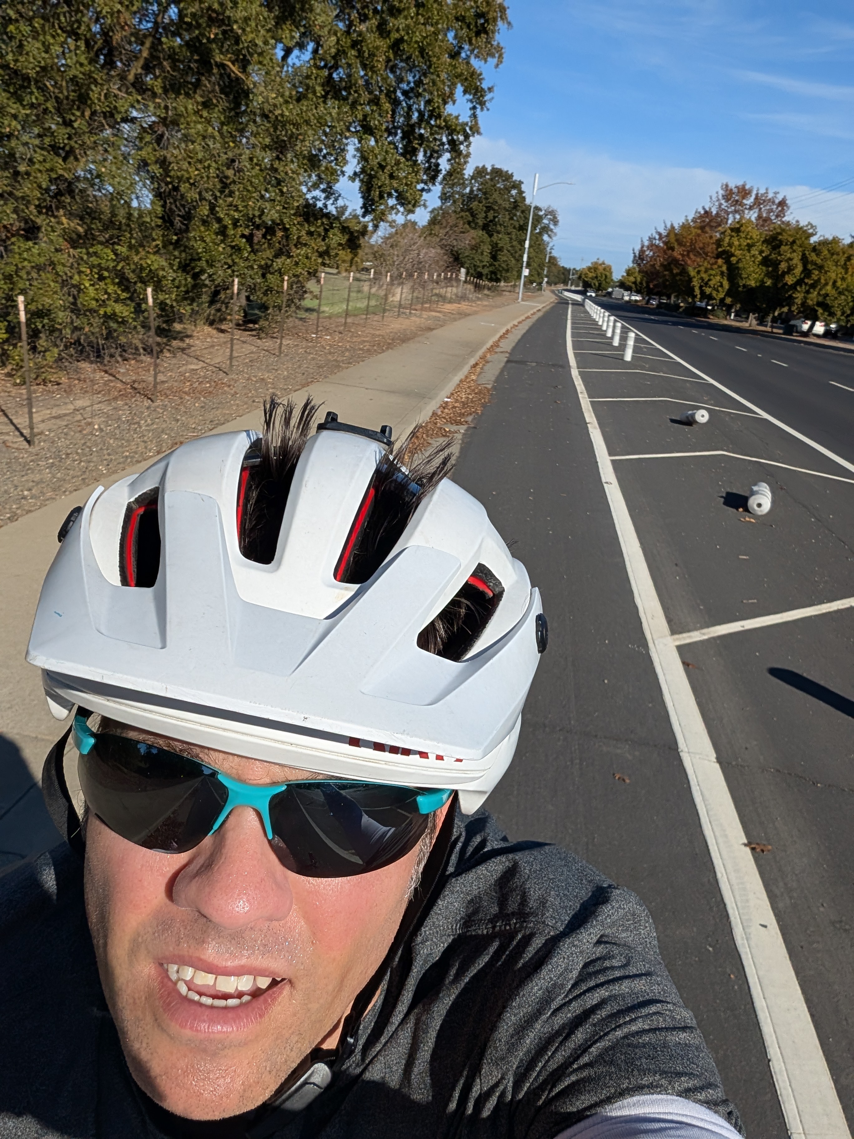 Just after I left the preserve (whose facilities were closed due to government shutdown, so I didn't get to use the bathroom there or check out the visitor center), a road bike rider caught up with me and we chatted and rode together for a few miles. He kindly slowed down to my speed and let me draft off him for a bit and we shouted a conversation at eachother while we did. He turned off a few miles later. Not a lot of cyclists in the countryside once I left Sacramento - for the rest of the trip!