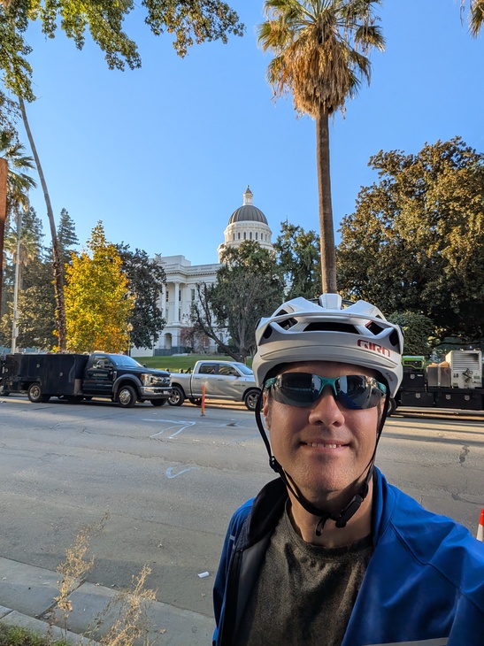 The train ride from Portland went smoothly, though I slept poorly. I debarked at dawn in Sacramento. Downtown is still asleep. Headed to get fueled up before riding, and found some extremely reasonably priced biscuits and gravy at a highly rated diner across from the state capital - for 7$ I'll call a large portion a 5 star meal too - and then got an overpriced coffee at an overrated corporate coffee location. While I was sipping, I applied sunscreen and turned south, heading out of town.