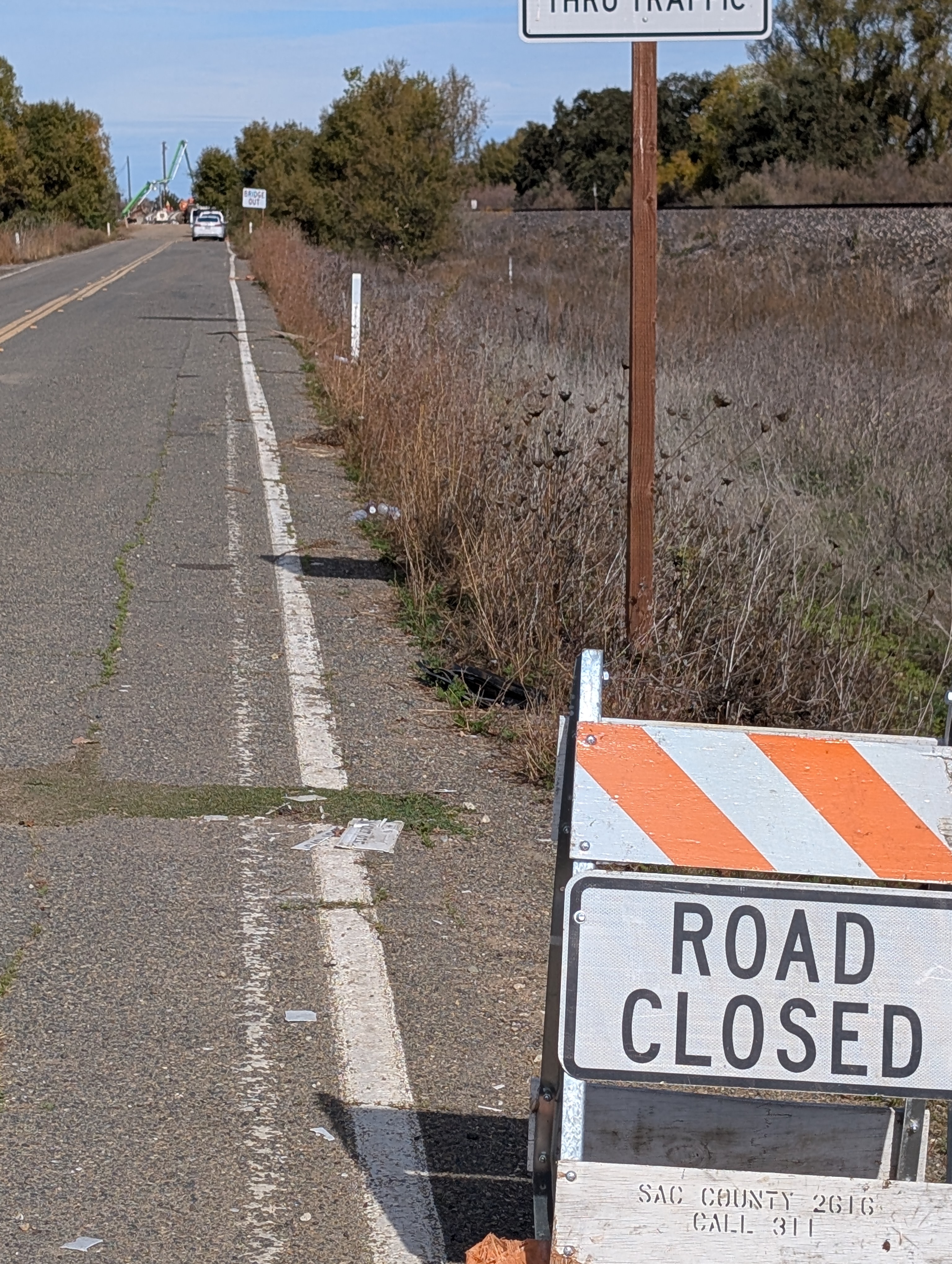 Sacramento sprawl carries on for many miles! I rode back into the Sacramento city limits around mile 20 of my ride south from downtown! I'd been in some pretty empty land for a minute but headed back through a populous stretch before really getting out of town. I rode past some road closure signs as I headed on into the rural spots between towns, and here the agriculture and wetlands took back over. Fortunately, nothing today was actually flooded. However, as I rode through The Cosumnes River Preserve I did indeed have to route around a closed bridge, off the "official" route - but it was another low traffic road populated mostly by birds.
