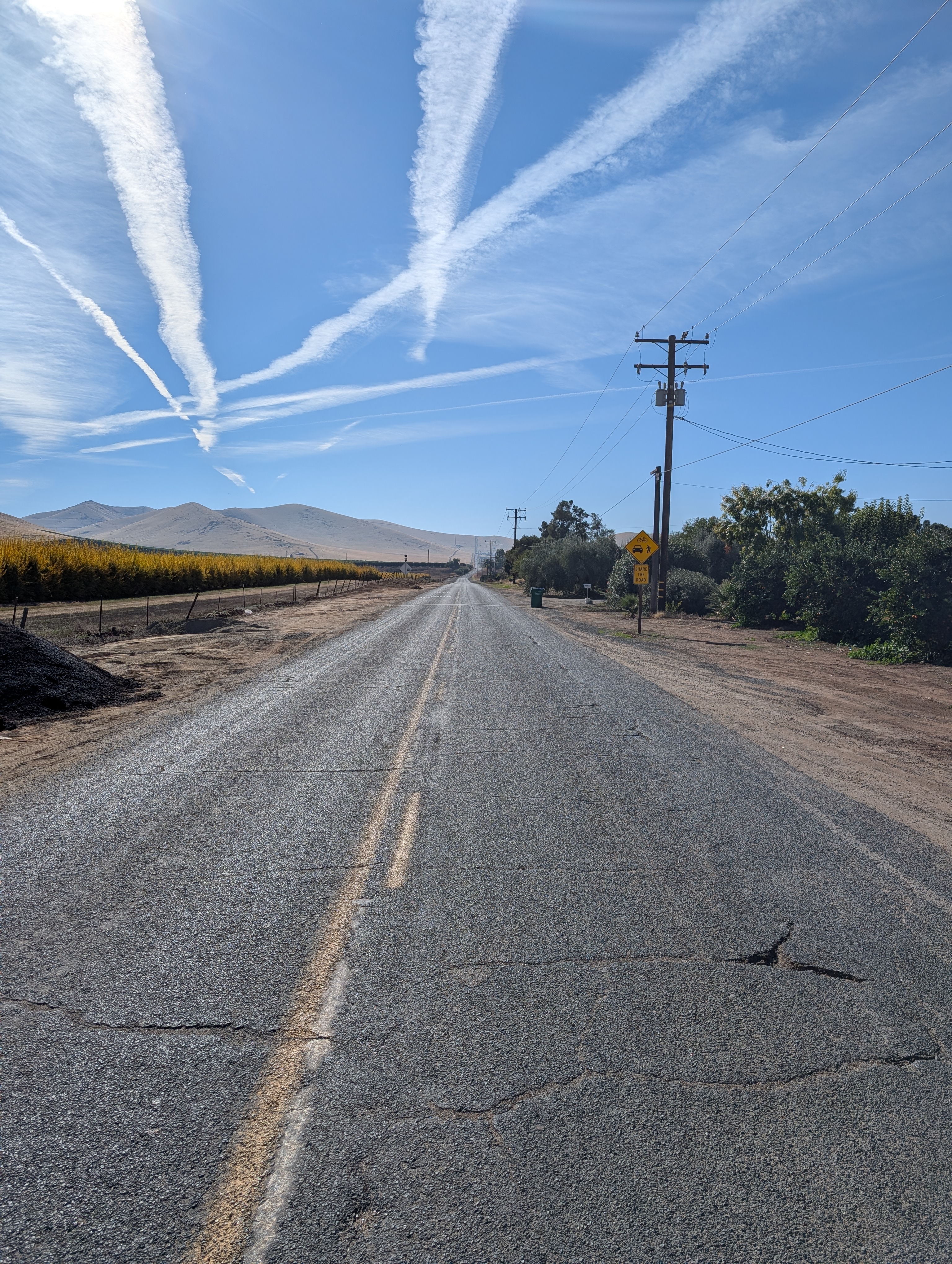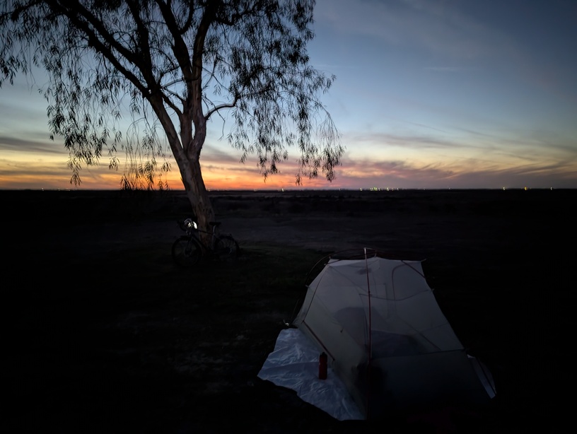 Lollygagged for a fair while this morning knowing that today was shorter in miles and suspecting that there wouldn't be a ton to do out at the campground, which is 8ish miles out of town - so, not planning on riding back into town after I get set up at the campground. Had a second disappointing breakfast at Mcdonalds (first disappointing breakfast was toast and coffee at the hotel). Snacked my way towards the last town of the day that was restaurant sized, called Earlimart. There were 100 taquerias and a McDonalids, and for some reason I chose to eat Mcdonalds again, and discovered frozen coke (better than a coke slurpee since it didn't seem to turn into just ice by the end). On the way out, there was a food cart across the street, so thinking of dinner, I stopped to get all that it sold - literally 1 item on the menu: churros. Somehow ended up ordering 10 churros (the guy held up a ballpoint pen and said "this is how big they are man, you don't want just 2!"), and they were amazing and so that was dessert, and dinner. I'm an adult and I can do that if I want! No regrets.