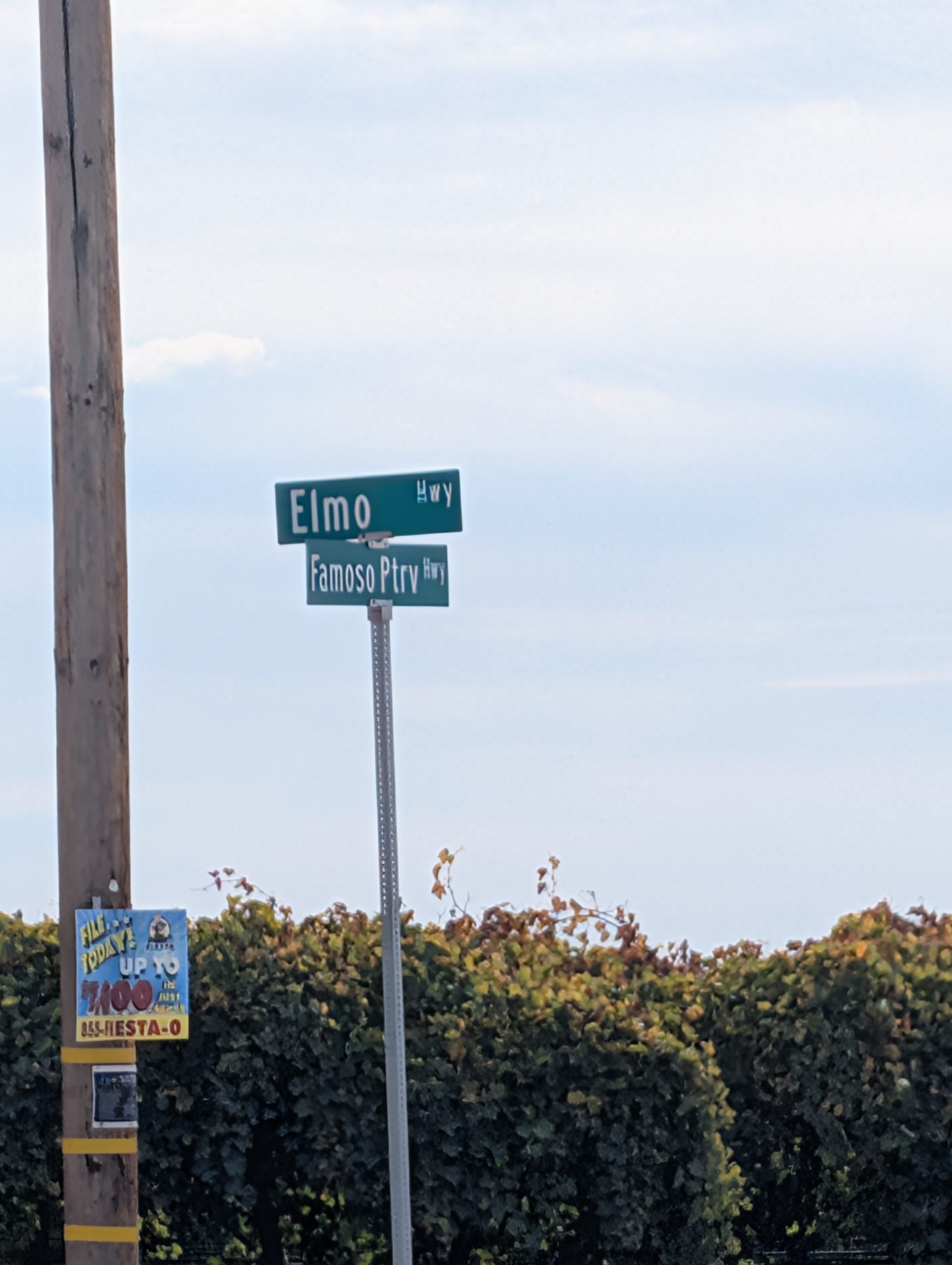 - I crossed the ELMO HIGHWAY, while on ZERKER ROAD