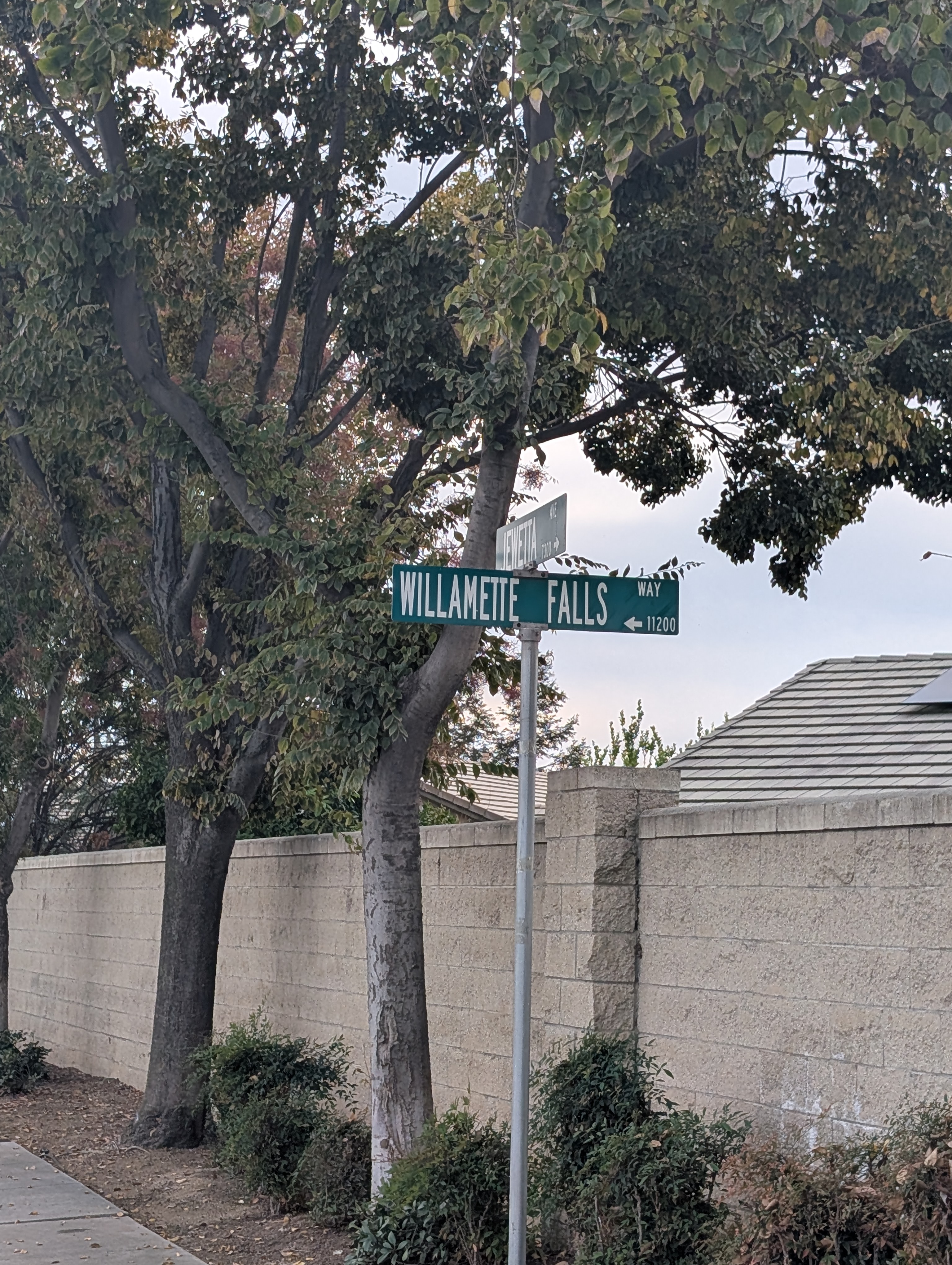 - There was a neighborhood in North Bakersfield with street names of big waterfalls, and the way I figured this out was seeing one called "Wilammette Falls Dr"